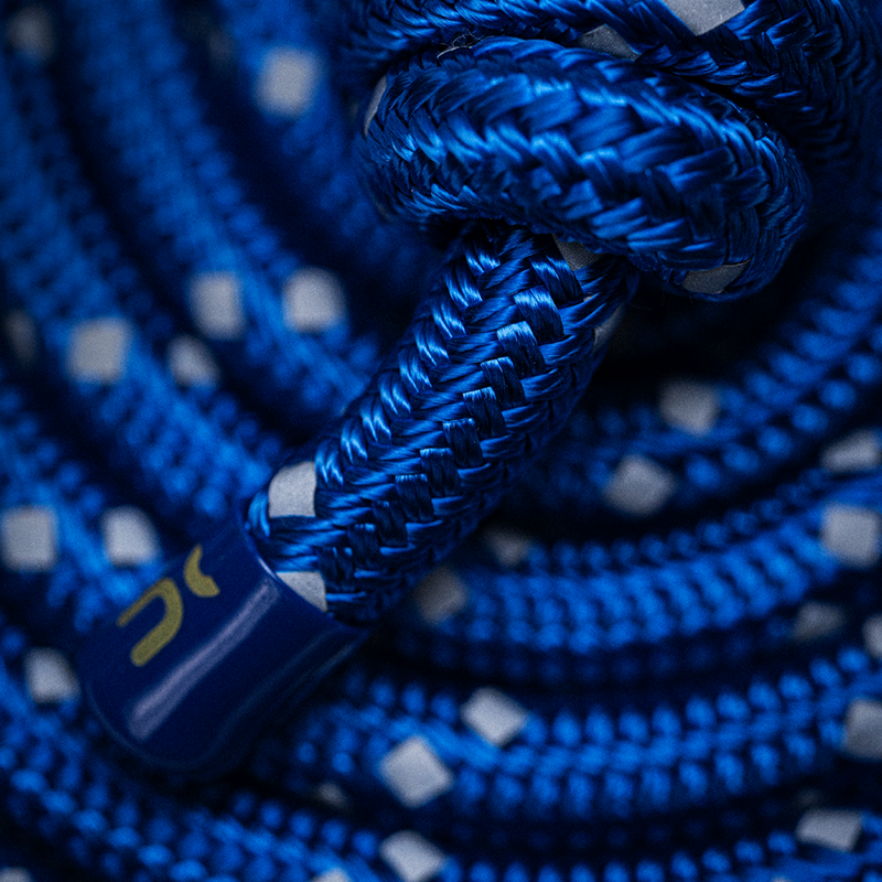 This playful flow rope dazzles in royal blue and sports jumbo reflective strips that shine bright with every move. Perfect for adding a flash of fun and visibility to your routine.